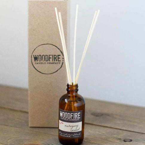 Woodfire signature scents are now available in reed diffuser sets. 4oz of your favorite scent is packaged up in a beautiful amber glass bottle with 5 naturally harvested reeds in a hand stamped box, ready for gift giving. Each jar last approximately 6 months.